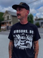 New Gibsons shirts featuring our beloved hometown mascot “insane amphibian dance man”